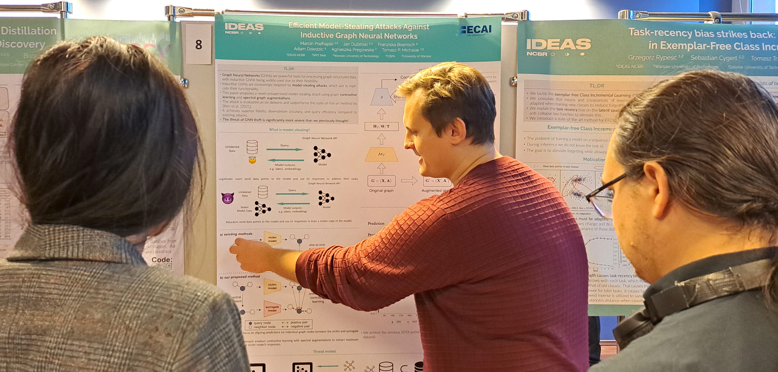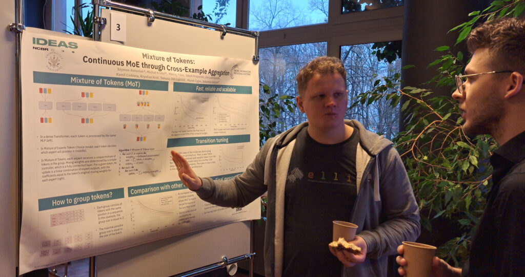 'Presenting posters at a session of this type is more than just a dress rehearsal, it provides very good access to colleagues from the local community, which is sometimes impossible at the conference itself. Conferences like NeurIPS are huge pots with thousands of people. Smaller-scale events have great value in themselves, ’ says Jan Dubiński, PhD student at the Warsaw University of Technology and at IDEAS NCBR.